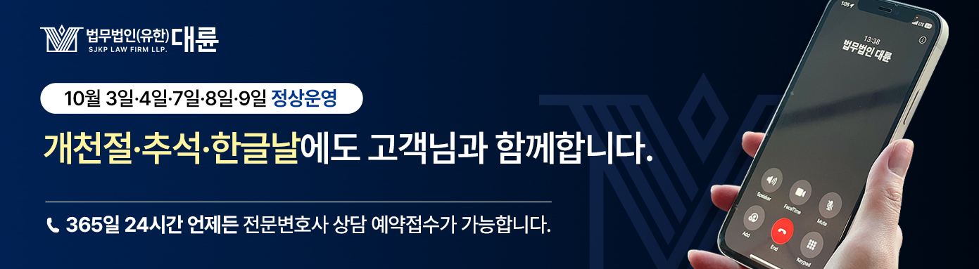 안녕하세요, 법무법인(유한) 대륜입니다.