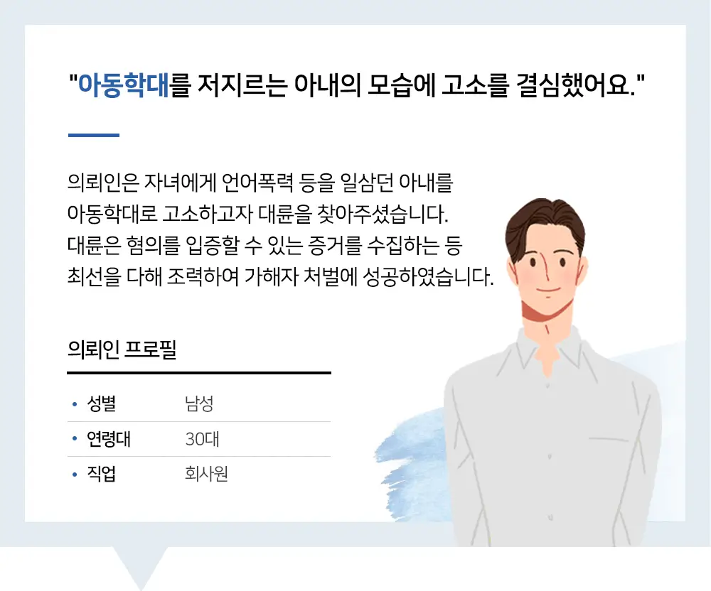 진주로펌 대륜을 찾아오신 의뢰인은 전문변호사에게 아동학대 고소 대리를 요청하셨습니다.